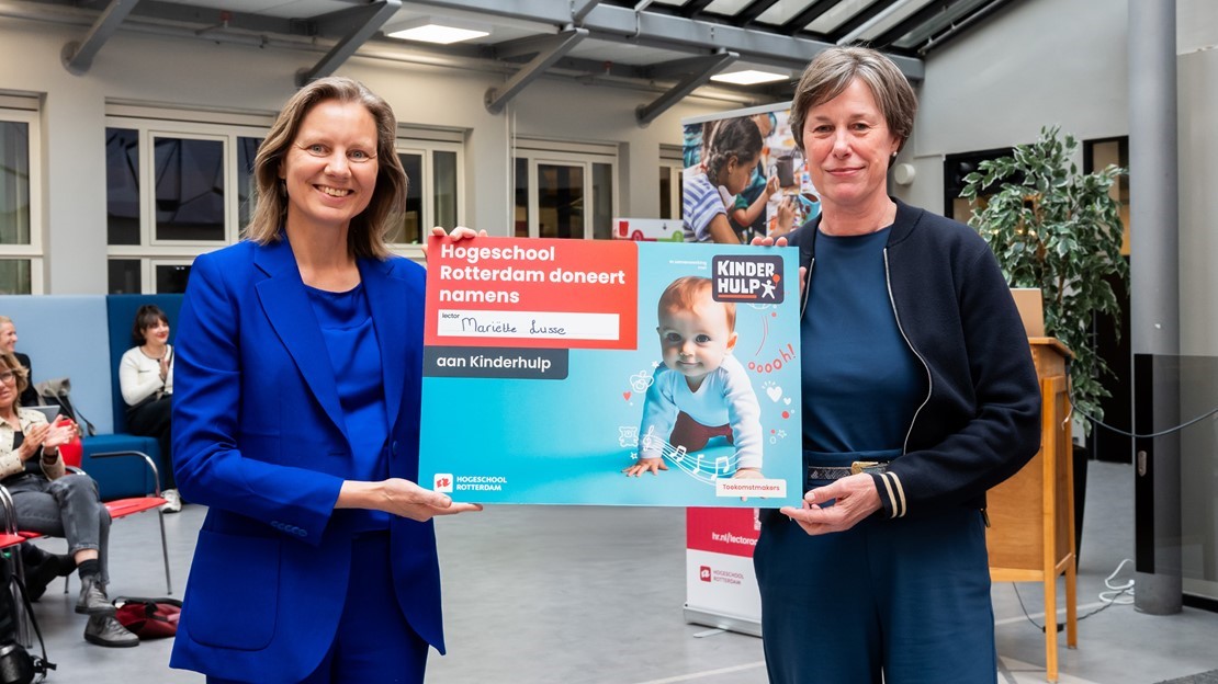 Because it is Child Poverty Day, it is not Mariëtte Lusse who will receive a cheque and a donation to the fund, but the National Fund for Children's Aid. Reuling also thanked the municipality of Rotterdam. Not only for its role in the initiative for the child poverty research programme, but also for its efforts to prevent students at Rotterdam University of Applied Sciences from dropping out prematurely because of money worries.