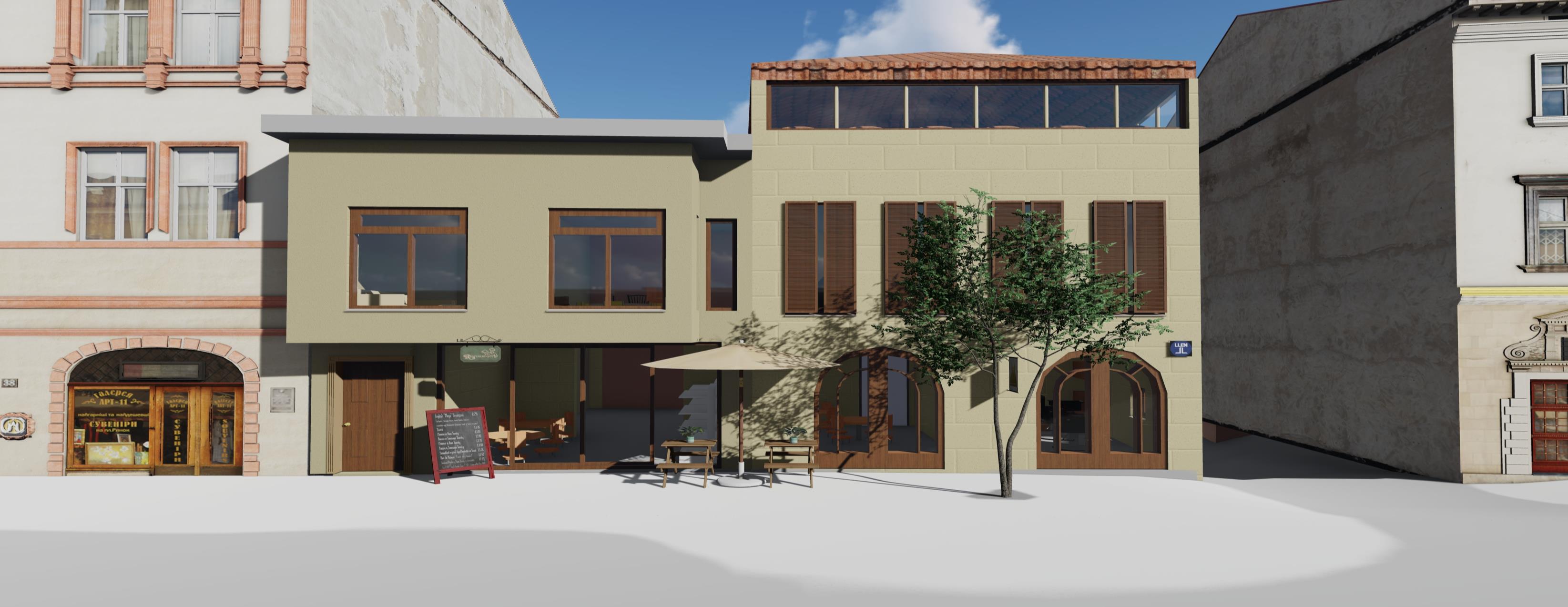 The collaboration with Rotterdam university of applied science included the design of a new large kitchen in an existing modern building, as well as designing the reuse of the adjacent monumental stone house that has been used as the cultural centre. Students had to think of the two buildings together, considering the spatial program and the static, mechanic, and material characteristics, differences, how to design each building, and how to design them together, with a functioning connection between the two.